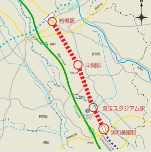 さいたま市の東部が「新駅&首都高延伸」で大化け? 巨大な「未来の街」開発検討へ “東京依存”脱却も目指す 読み込み中... 拡大画像 埼玉高速鉄道の延伸ルート(画像:さいたま市) 拡大画像 埼玉高速鉄道の延伸ルート(画像:さいたま市) 拡大画像 中間駅周辺の上空写真(画像:さいたま市) 拡大画像 核都市広域幹線道路のルート(画像:埼玉県) 拡大画像 埼玉高速鉄道の車両(画像:写真AC) 拡大画像 岩槻駅の駅前に掲げられた鉄道延伸を願う看板(乗りものニュース編集部撮影) 関連記事 「宮ヶ瀬」がさらにライダーの聖地に! 官民プロジェクト始動 (PR)バイク王 消えた「3県直通の普通列車」が15年ぶり復活!? 約2時間半かけて走る 北陸3社にまたがり“接続改善” 【見逃し配信中!】「自動車DXサミット vol.4」 (PR)アイティメディア/メディア・ヴァーグ 「臨時列車は設定できない」のに名古屋から直通実現!? 「奇跡のローカル線」がまた起こした奇跡とは 名松線が沸いた! 東北新幹線の最速達列車が増発へ! 東京11時台発の車両が増えます 増発に伴い「こまち」に変更も この画像の記事を読む