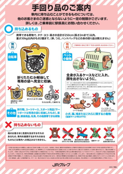 え、コワイ!! ペットを原付のカゴに直乗せで走っても問題ないの? じつは法律違反になるケース有り 読み込み中... 拡大画像 JR東日本が公開している手回り品の案内概要。ペットの運び方についても詳細に解説されている。なお、猛獣やヘビは列車内に持ち込めない(画像:JR東日本)。 拡大画像 飼い主なしで単独で列車に乗って出かけた猫「ティリー」。2025年2月にイギリスで話題になった(画像:サウスウエスタン鉄道)。 拡大画像 飼い主なしで単独で列車に乗って出かけた猫「ティリー」。そこでイギリスの鉄道会社、サウスウエスタン・レールウェイ(SWR)は専用のICカード乗車券を発行した(画像:サウスウエスタン鉄道)。 拡大画像 原付に犬を乗せて走るイメージ(画像:PIXTA)。 拡大画像 自転車の前カゴに犬を直接乗せたイメージ(画像:写真AC)。 この画像の記事を読む