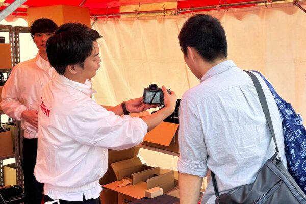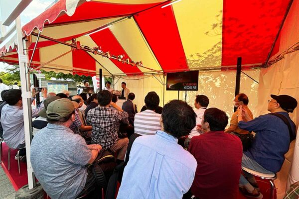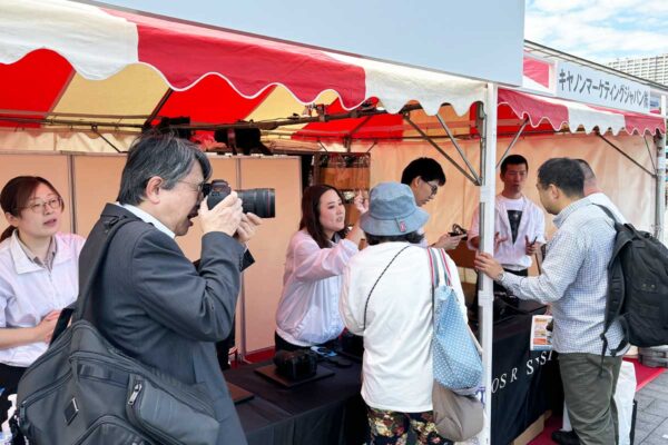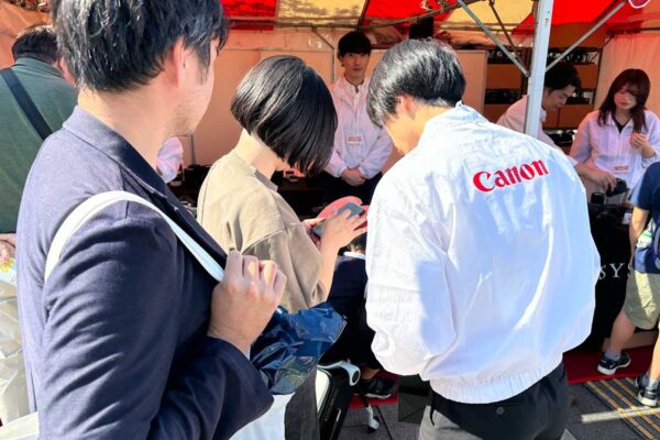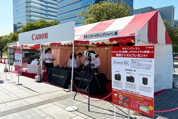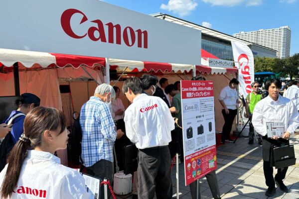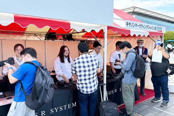 昨年のキヤノンブースの様子。 EOS R1/EOS R5 Mark IIを体験できるタッチ&トライは、終日多くの人でにぎわった