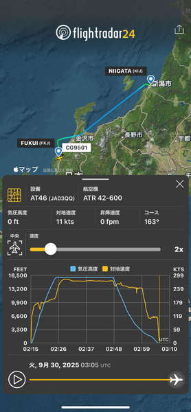 「半世紀近く定期便ナシ」の福井空港に”珍客”降臨…なぜ? 「特別感ある」「あの福井空港に…」 読み込み中... トキエア「新潟~福井チャーター便」の飛行データ(画像:フライトレーダー24) トキエア機(画像:トキエア)。 この画像の記事を読む