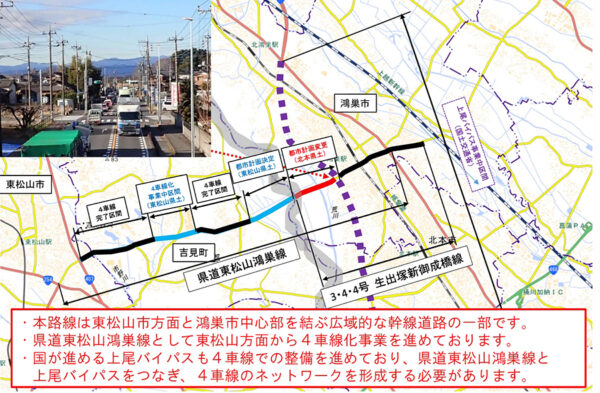 「日本一の川幅」貫く道路が“拡幅”へ 国道17号バイパス整備で機能強化 関越道までぜんぶ4車線に! 読み込み中... 拡大画像 「川幅日本一」の標柱が立つ東松山鴻巣線。拡幅される見込み(画像:PIXTA) 拡大画像 都市計画変更原案について(画像:埼玉県) 拡大画像 都市計画変更原案について(画像:埼玉県) 拡大画像 都市計画変更原案について(画像:埼玉県) 拡大画像 都市計画変更原案について(画像:埼玉県) 拡大画像 都市計画変更原案について(画像:埼玉県) 拡大画像 都市計画変更原案について(画像:埼玉県) 拡大画像 都市計画変更原案について(画像:埼玉県) 拡大画像 都市計画変更原案について(画像:埼玉県) 拡大画像 都市計画変更原案について(画像:埼玉県) 拡大画像 都市計画変更原案について(画像:埼玉県) 拡大画像 都市計画変更原案について(画像:埼玉県) 拡幅される見込みの東松山鴻巣線(画像:埼玉県)。 この画像の記事を読む