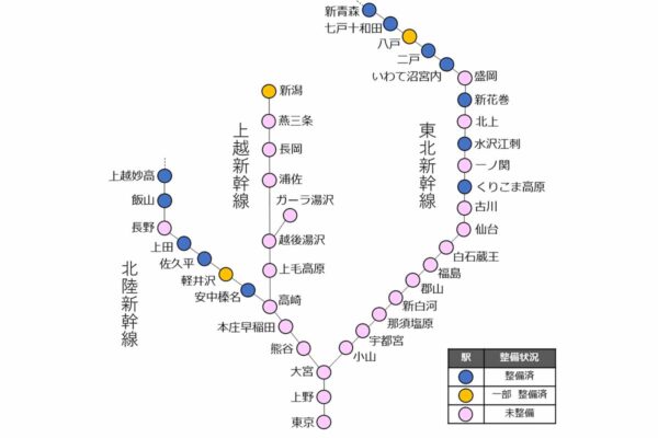 世界初の「新幹線ホームドア」東京駅に導入へ JR東日本が「新方式」を開発中 多種多様の編成にどう対応? 読み込み中... 拡大画像 編成判別とホームドア自動開扉の概要(画像:JR東日本) 拡大画像 東北・上越・北陸新幹線のホームドア整備状況(画像:JR東日本) 拡大画像 新幹線東京駅に導入するホームドアの仕様(画像:JR東日本) 新幹線東京駅のホームドア設置イメージ(画像:JR東日本) この画像の記事を読む
