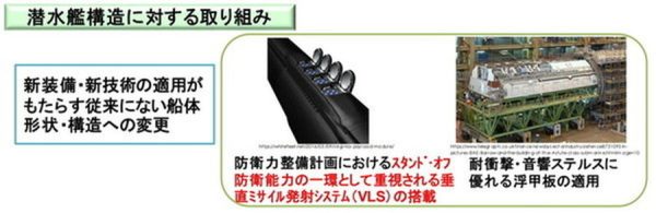海自の潜水艦が大進化!「超長射程ミサイル」海中から発射可能へ 三菱重工で量産スタート 読み込み中... 水中発射型垂直発射装置の研究イメージ(画像:防衛省)。 川崎重工の次期潜水艦のコンセプト案。「そうりゅう」や「たいげい」とは異なり、船体中央部にある構造物(セイル)が、やや船体後方に移動している(画像:川崎重工)。 防衛装備庁の潜水艦構造様式の研究(画像:防衛装備庁)。 拡大画像 海上自衛隊の潜水艦のイメージ(画像:海上自衛隊)。 拡大画像 海上自衛隊の潜水艦のイメージ(画像:海上自衛隊)。 拡大画像 海中にいるアスチュート級潜水艦から発射された「トマホーク」巡航ミサイル(画像:イギリス海軍)。 この画像の記事を読む
