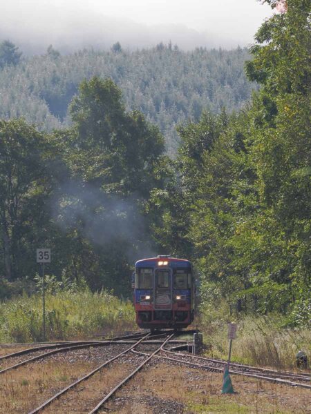 「そんな鉄くずどうするんだ」で始まり、今はリピーター続出!? “日本最長の保存鉄道”どうやって維持? 冬はマイナス30度の地 読み込み中... 拡大画像 陸別駅構内のレールは一世紀以上昔の輸入レールが現役。1番線は日本帝国鉄道(I.R.J.)向けドイツ・ライン製鋼所(R.S.W.)1908年製のレールが使用されている。網走線の時代から現役だろうか(吉永陽一撮影) 拡大画像 朝8時頃、JR貨物OBの運転士がメーテル号に乗り込み始動作業を行う。保存車両は銀河線廃止時から屋根付きの場所で保管されてきた(吉永陽一撮影) 拡大画像 りくべつ鉄道となってから設置された百恋(ひゃっこい)駅には可憐なコスモス畑があって、蘇の脇を運転体験列車がゆっくり通過していく(橋本晶子撮影) 拡大画像 踏切は道路優先のため保安要員を配置する。保安要員はボランティアではなくアルバイトであり、地域で雇用促進を促している(橋本晶子撮影) 拡大画像 朝のエンジン始動から試運転へ。この日は奥のメーテル号が動いた。構内を往復して始動作業をする。奥の車庫で休むのは構外線用の車両(吉永陽一撮影) 拡大画像 朝の試運転に勤しむメーテル号。陸別駅南側の国道手前で線路が途切れているため、そこでバックすることになるが、現役時代さながらの光景である(吉永陽一撮影) 拡大画像 2両あるメーテル号のうちの1両。人気車両であったために使用頻度が高く、エンジンを降ろして大規模修繕を待つ。大型ジャッキ類は銀河線廃止直後に譲渡された(吉永陽一撮影) 拡大画像 構外線用のCR75-101気動車はロングシートでテーブルが備わる観光仕様。車端部のドア上にはりくべつ鉄道となってからの路線図が掲げられている(吉永陽一撮影) 拡大画像 構外線の分線駅まで担当するのがCR75-101。陸別駅構内とは踏切を挟んだ向かいに車庫を設け、運転体験乗降用の駅を兼ねた車両保管所となっている(吉永陽一撮影) 拡大画像 陸別駅舎にはホームが直結されており、車両保管を兼ねた大屋根が車両達を風雨と雪から守っている(吉永陽一撮影) 拡大画像 陸別駅は国鉄時代から重厚な跨線橋が活躍してきた。この跨線橋とCR形気動車は銀河線時代からの顔である(吉永陽一撮影) この画像の記事を読む