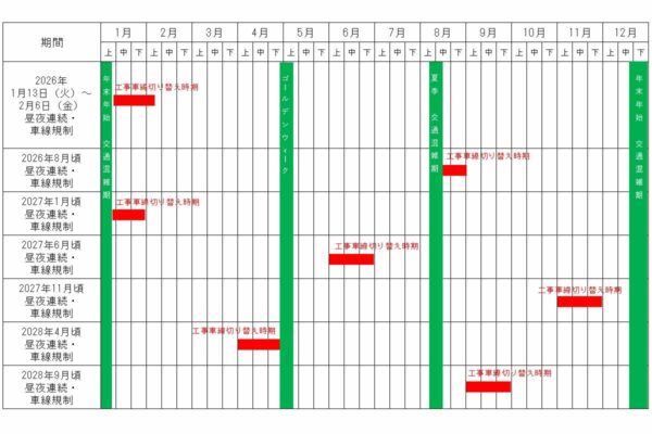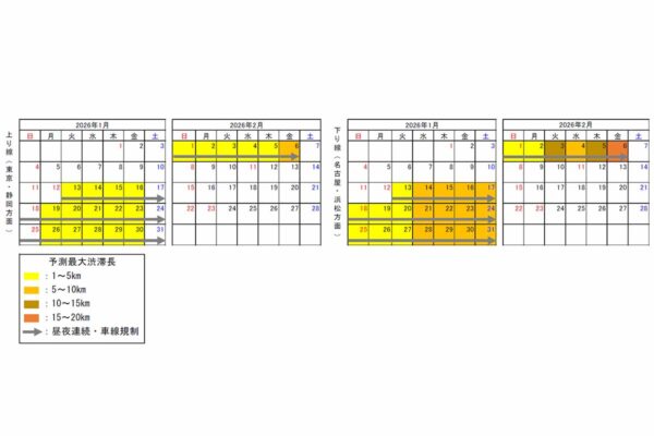 15km渋滞も覚悟? 東名「3年間の工事」2026年スタート 1日3万台超の区間で“少しずつ”施工 読み込み中... 拡大画像 東名高速・太田川橋改修工事の区間(画像:NEXCO中日本) 拡大画像 車線切り替え工事の期間(画像:NEXCO中日本) 拡大画像 渋滞予測カレンダー(画像:NEXCO中日本) 拡大画像 渋滞予測カレンダー(画像:NEXCO中日本) 拡大画像 現在の車線運用(画像:NEXCO中日本) 拡大画像 2026年1月13日からの車線運用(画像:NEXCO中日本) 拡大画像 2026年1月13日からの車線運用(画像:NEXCO中日本) 拡大画像 2026年2月7日からの車線運用(画像:NEXCO中日本) 拡大画像 2026年8月上旬からの車線運用(画像:NEXCO中日本) 拡大画像 2027年1月上旬からの車線運用(画像:NEXCO中日本) 拡大画像 2027年6月上旬からの車線運用(画像:NEXCO中日本) 拡大画像 2027年11月上旬からの車線運用(画像:NEXCO中日本) 拡大画像 2028年4月上旬からの車線運用(画像:NEXCO中日本) 拡大画像 2028年9月上旬からの車線運用(画像:NEXCO中日本) 拡大画像 2028年9月上旬からの車線運用(画像:NEXCO中日本) 東名高速の太田川橋(画像:NEXCO中日本) 太田川橋の損傷状況(画像:NEXCO中日本) 太田川橋の損傷状況(画像:NEXCO中日本) この画像の記事を読む