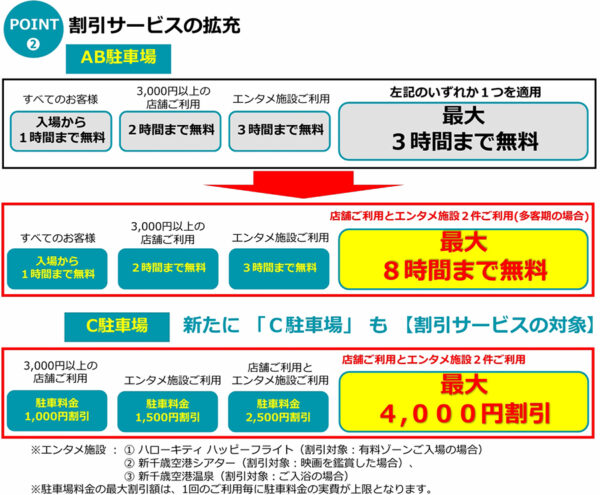 「飛行機乗る人よりカネ使う人優遇」に怒りの声も 新千歳空港の駐車料金“最大5倍”の衝撃 一体なぜ? 読み込み中... 拡大画像 新千歳空港の駐車場料金改定について(画像:新千歳空港) 拡大画像 新千歳空港の駐車場料金改定について(画像:新千歳空港) 拡大画像 新千歳空港の駐車場料金改定について。空港施設利用者への割引拡充がかえって不評を買った側面も(画像:新千歳空港) 拡大画像 新駐車場の建設計画も発表された(画像:新千歳空港) 拡大画像 新千歳空港の駐車場。空き状況は10月14日18時台時点(画像:新千歳空港) 拡大画像 新千歳空港A駐車場の状況。10月14日18時台。値上げ以降、利用者が減ったというSNS投稿もある(画像:新千歳空港) 拡大画像 新千歳空港(画像:PIXTA)。 拡大画像 新千歳空港の駐車場。国際線・国内線ターミナルに隣接するA・B駐車場だけで4200台以上あるのもポイント(画像:PIXTA)。 この画像の記事を読む