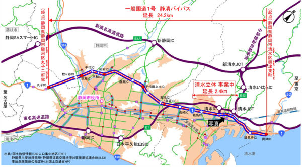 ここができればマジで「第三の東名」に!? 国道1号バイパスの“超ボトルネック立体化”どこまで進んだ? 8名死傷の橋桁落下事故から2年 読み込み中... 拡大画像 国道1号静清バイパスの「清水立体」について(画像:中部地方整備局) 拡大画像 国道1号静清バイパスの「清水立体」について(画像:中部地方整備局) 拡大画像 国道1号静清バイパスの「清水立体」について(画像:中部地方整備局) 拡大画像 国道1号静清バイパスの「清水立体」について(画像:中部地方整備局) 拡大画像 国道1号静清バイパスの「清水立体」について(画像:中部地方整備局) 拡大画像 国道1号静清バイパスの「清水立体」について(画像:静岡国道事務所) 拡大画像 国道1号静清バイパスを東進。立体部は高速道路並みだ 拡大画像 国道1号静清バイパスを東進。立体部は高速道路並みだ 拡大画像 立体部は清水の手前で途切れる 拡大画像 立体部は清水の手前で途切れる 拡大画像 清水立体の建設が進む 拡大画像 清水立体の建設が進む 拡大画像 清水立体の建設が進む 拡大画像 清水立体の建設が進む 拡大画像 清水立体の建設が進む 拡大画像 国道1号「静清バイパス」。清水立体の工事が進む(乗りものニュース編集部撮影) この画像の記事を読む