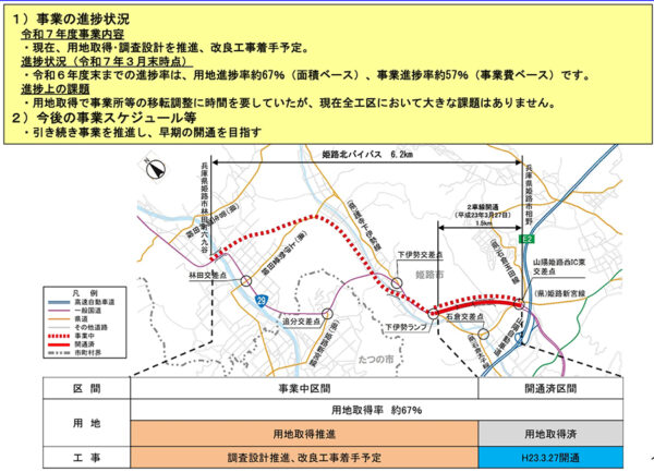 無料の信号無しバイパス「鳥取方面へ延ばす!」 姫路の南北結ぶスイスイ道“延伸”どこまで進んだ? まもなく港へ道通ず 読み込み中... 拡大画像 姫路北バイパスについて(画像:姫路河川国道事務所) 拡大画像 姫路西・姫路北バイパスについて(画像:姫路河川国道事務所) 拡大画像 姫路北バイパスについて(画像:姫路河川国道事務所) 拡大画像 姫路北バイパスについて(画像:姫路河川国道事務所) 拡大画像 姫路北バイパスについて(画像:姫路河川国道事務所) 拡大画像 姫路北バイパスの整備効果(画像:姫路河川国道事務所) 拡大画像 姫路北バイパスの整備効果(画像:姫路河川国道事務所) 拡大画像 姫路北バイパスの整備効果(画像:姫路河川国道事務所) 拡大画像 姫路北バイパスの進捗(画像:姫路河川国道事務所) 拡大画像 姫路北バイパス、2011年開通済み区間(画像:姫路河川国道事務所) 拡大画像 姫路北バイパス、2011年開通済み区間(画像:姫路河川国道事務所)。 この画像の記事を読む