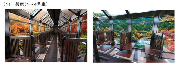 車体ほぼ“窓”!? 京都の絶景列車に「ガラス張りの新型車両」導入へ 特別室も設置! 読み込み中... 拡大画像 新たなトロッコ車両の一般席(画像:嵯峨野観光鉄道) 拡大画像 新たなトロッコ車両の特別席(画像:嵯峨野観光鉄道) 拡大画像 新たなトロッコ車両の編成(画像:嵯峨野観光鉄道) 拡大画像 嵯峨野観光鉄道の新たなトロッコ列車の外観イメージ(画像:嵯峨野観光鉄道) この画像の記事を読む