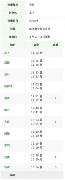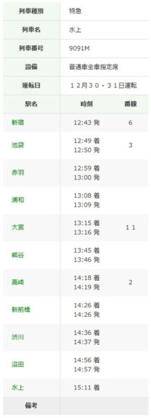 新宿駅と「群馬県の最北」を結ぶ特急列車が運転へ 年末年始だけのレア列車が大変化! 読み込み中... 拡大画像 臨時特急「水上」の運行時刻(画像:JR東日本) 拡大画像 臨時特急「水上」の運行時刻(画像:JR東日本) 拡大画像 E257系(画像:写真AC) この画像の記事を読む