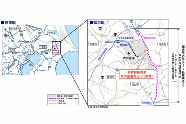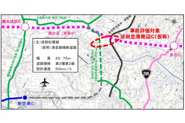 「成田の裏口」つくります 建設中の高速道路も「空港直結」へ 県が進めるIC計画 読み込み中... 拡大画像 成田空港周辺IC(仮称)の概要(画像:千葉県) 成田空港周辺IC(仮称)の概要。単位:m(画像:千葉県) 拡大画像 成田空港周辺IC(仮称)の概要(画像:千葉県) 成田空港(乗りものニュース編集部撮影) 関連記事 「突然ドカンドカンと2度にわたる鈍い音」 日本戦艦「金剛」の最期 海の「生き地獄」から生還した士官の手記【大戦「その時」】 「新東名&圏央道~小田厚」の新ルート“隣の道路”も開通! “高速密集地帯”をひらり回避可能!? 将来どこまでつながる? 「無料&信号ナシ」で12km超 「東播磨道」全線開通日が決定! JR線並行の“高規格南北軸” 高速道路に「ナゾの緑のライン」が引かれていました。これは何なのでしょうか?どう運転すれば?→実は“ドライバー想いの有能設備”だった JALに驚愕の旅客便出現 「成田空港発”成田JAL格納庫”行き」なぜ? 「多分日本初」の珍区間誕生の経緯とは この画像の記事を読む