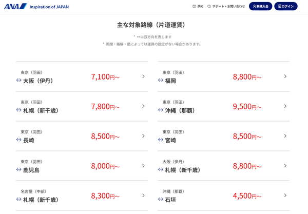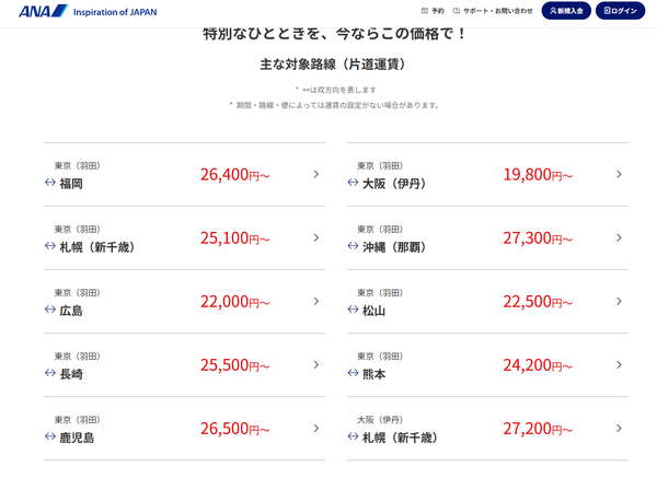 ANA国内線に「驚安運賃」出現へ 普通席は「片道4500円から」年末年始も… 上位クラスも安く乗れる! 読み込み中... ANA「国内線航空券タイムセール」の運賃例。普通席の場合(同社公式サイトより)。 ANA「国内線航空券タイムセール」の運賃例。プレミアムクラスの場合(同社公式サイトより)。 ANA機(乗りものニュース編集部撮影)。 関連記事 買っても売ってもお得! バイク王の一大決算セール開催中!! (PR)バイク王 ド深夜の羽田空港から「ナゾの真っ白旅客機」が離陸…なぜ? 実は「歴史と思いが詰まっている機体」…その経緯って? 【アンケート】鉄道の「乗り換えやすい駅」「乗り換えにくい駅」はどこですか? 海自の射撃訓練に謎の「テープぐるぐる無人機」出現! じつは業界注目の最先端ドローンかも? 「昔の羽田空港跡地」、今後激変へ どう変わる? 2028年オープン予定の「新プロジェクト」その概要は この画像の記事を読む