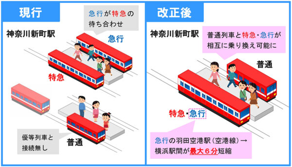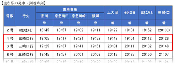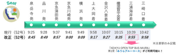 「座って帰れる有料列車」がほぼ“終点まで直通”に 京急12月ダイヤ改正 急行も早くなる! 読み込み中... 拡大画像 イブニング・ウィング号は2号を除きすべて三崎口行きに(画像:京急電鉄)。 拡大画像 「ウィング・シート」52号の運行時間を繰り上げ(画像:京急電鉄)。 拡大画像 「ウィング・シート」52号と接続する「KEIKYU OPEN TOP BUS MIURA」(画像:京急電鉄)。 拡大画像 一部列車は神奈川新町での相互乗り換えが可能に(画像:京急電鉄)。 拡大画像 京急2100形で運行されるイブニング・ウィング号(画像:PIXTA)。 関連記事 買っても売ってもお得! バイク王の一大決算セール開催中!! (PR)バイク王 「80年ぶりの新車」12月デビュー決定! 東北「もと私鉄のJR線」に 【アンケート】鉄道の「乗り換えやすい駅」「乗り換えにくい駅」はどこですか? 「埼京線と武蔵野線が交差するエリア」が大変貌!? さいたまの“ジャンクション駅”再開発区域を拡大へ Suicaタッチが必要ない「革新的な新改札」JR東が在来線に初導入へ 28年度にも品川エリアで この画像の記事を読む