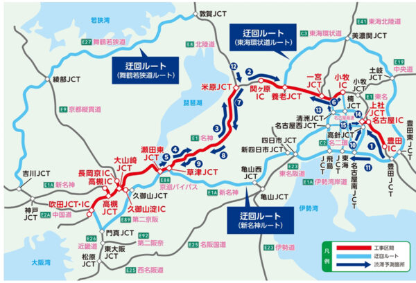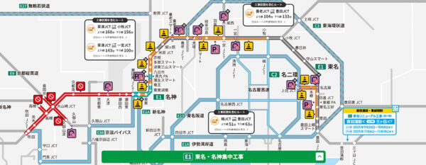 「大回りすればよかった…」名神の集中工事“地獄の渋滞”に悲鳴! “新ルート”の実力発揮!? 「ちゃんと調べようねー」 読み込み中... 拡大画像 東名・名神集中工事の概要。11月29日まで。規制区間は日時によって異なる(画像:NEXCO中日本) 拡大画像 東名・名神集中工事の概要。11月29日まで。規制区間は日時によって異なる(画像:NEXCO中日本) 拡大画像 東名・名神集中工事の概要(画像:NEXCO中日本) 拡大画像 迂回路について(画像:NEXCO中日本) 拡大画像 集中工事の様子(画像:NEXCO中日本) 拡大画像 集中工事の様子(画像:NEXCO中日本) 拡大画像 名神で集中工事による渋滞が深刻となっている(画像:NEXCO中日本名古屋支社)。 関連記事 買っても売ってもお得! バイク王の一大決算セール開催中!! (PR)バイク王 クルマ好きの聖地「大黒PA」一新! 「ゆったりできる」首都高のPAに 商業施設リニューアルが話題に 【アンケート】鉄道の「乗り換えやすい駅」「乗り換えにくい駅」はどこですか? 関越道の「猛烈スキー渋滞」に神対策!? 「ピーク避ければ実質“格安”ETCパス」発売! お得度は“出発時間次第” 「2つの巨大イオン」の間がやっと4車線に!? 県都の基幹バイパス、41年越しの全線4車線化 岩手 この画像の記事を読む