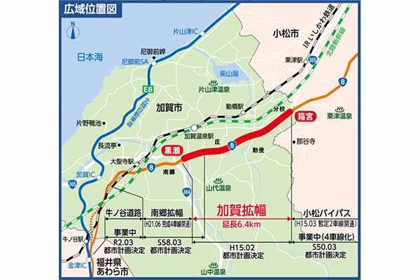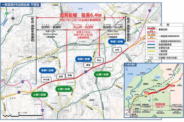 県内ほぼ全線が「4車線化or立体化」! 国道8号の「加賀拡幅」12月全線開通 読み込み中... 国道8号加賀拡幅事業の区間(画像:国土交通省北陸地方整備局金沢河川国道事務所) 拡大画像 国道8号加賀拡幅事業の区間(画像:国土交通省北陸地方整備局金沢河川国道事務所) 拡大画像 国道8号加賀拡幅事業の標準断面図。単位:m(画像:国土交通省北陸地方整備局金沢河川国道事務所) 拡大画像 4車線化を控えた加賀市津波倉町の国道8号加賀拡幅事業区間(画像:国土交通省北陸地方整備局金沢河川国道事務所) 関連記事 買っても売ってもお得! バイク王の一大決算セール開催中!! (PR)バイク王 池袋 魔の「六ツ又」がついに「五ツ又」化! “日本一危険な交差点”の一部が大変化!? 今後は? 小田急「ロマンスカー」歴代の“人気車種”は? 市街地スルーでついに国道4号接続! 東北道も近くなる“国道108号バイパス”12月全線開通 国道の混雑交差点「ぜんぶ立体化してしまえ」!? 県都の約10kmで進行中 死傷事故“ワースト”返上なるか? この画像の記事を読む