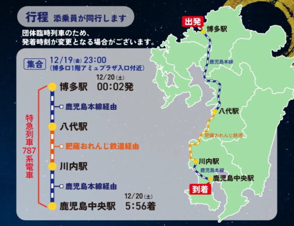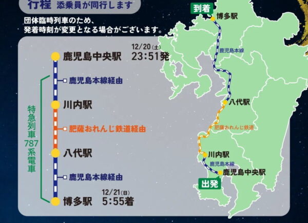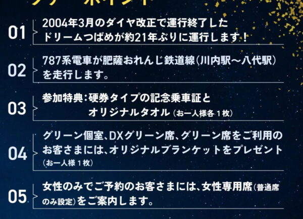 在来線で博多⇔鹿児島中央「直通」! 夜行列車で21年ぶりに12月運転 三セク路線も走る 読み込み中... 拡大画像 ツアー「夜行列車で行こう!787系ドリームつばめの旅」の概要(画像:JR九州) 拡大画像 ツアー「夜行列車で行こう!787系ドリームつばめの旅」の概要(画像:JR九州) 拡大画像 ツアー「夜行列車で行こう!787系ドリームつばめの旅」の概要(画像:JR九州) 拡大画像 787系(画像:写真AC)。 関連記事 買っても売ってもお得! バイク王の一大決算セール開催中!! (PR)バイク王 「116kmのJR廃線跡」使いみちは「太陽光」に これで駅のCO2排出“実質ゼロにします” 退けられた他の案も 小田急「ロマンスカー」歴代の“人気車種”は? 千葉の「イオン直結駅」利用者増も!? マリンスタジアムの“ドーム化”再検討へ 現施設より駅チカに 「大変助かっている」小田急~東京メトロ直通の“復活した系統”に感謝の声! 「千代田線の先」まで行ったロマンスカーって? この画像の記事を読む