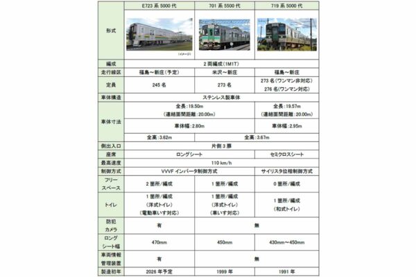 新型車両を「新幹線との共有区間」に投入へ 既存車両より座席ゆったり 計22両新造 JR東日本 読み込み中... 拡大画像 新型車両E723系5000番台のイメージ(画像:JR東日本) 新型車両E723系5000番台のイメージ(画像:JR東日本) 新型車両E723系5000番台のイメージ(画像:JR東日本) 新型車両E723系5000番台の投入予定線区(画像:JR東日本) 拡大画像 山形線を走る既存車両との比較(画像:JR東日本) 関連記事 買っても売ってもお得! バイク王の一大決算セール開催中!! (PR)バイク王 「JR駅と『市駅』をつなぐ橋」まるっと“横スライド”の次は“踏切新設” 街の象徴の造り替え大事業 通行止め範囲拡大 小田急「ロマンスカー」歴代の“人気車種”は? Suica・PASMO「改革の切り札」 新コード決済「テッペイ」導入へ まず超える「2つの壁」とは? 千葉の「イオン直結駅」利用者増も!? マリンスタジアムの“ドーム化”再検討へ 現施設より駅チカに この画像の記事を読む