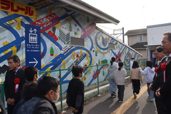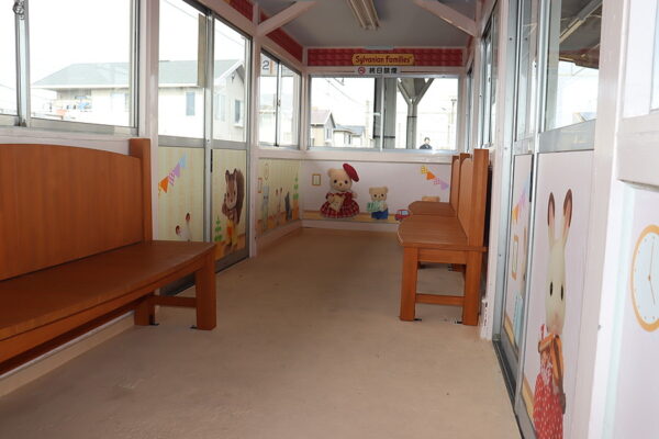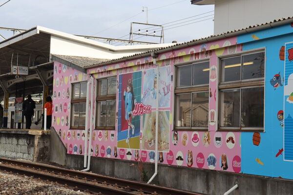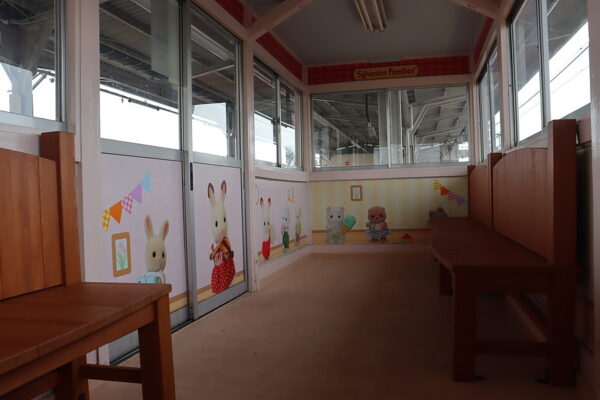 駅舎に「たまごっち」や「プラレール」が!? おもちゃのまち駅が“楽しい駅舎”に大変身! 駅の待合室もかなり可愛くなっている!