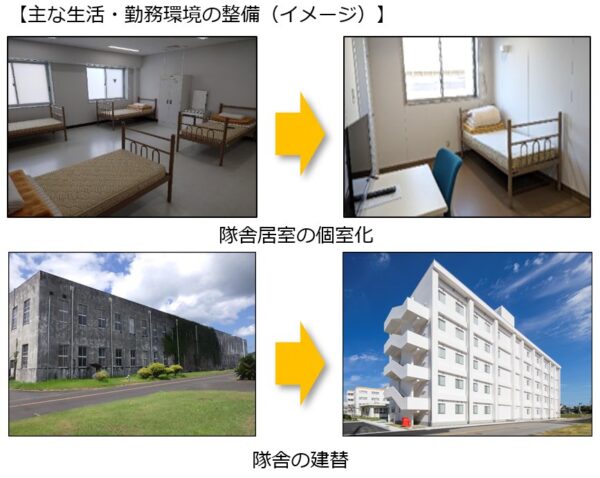 「自衛官の給与引き上げます!」小泉防衛相のSNSに大反響 “オンボロ隊舎”写真にも衝撃広がる 読み込み中... 拡大画像 補正予算で改善が明示された、隊舎居室の個室化と、隊舎の建替イメージ(小泉進次郎防衛大臣のX〈@shinjirokoiz〉より引用)。 拡大画像 老朽化した空調設備。令和7年度補正予算案では空調設備の整備に62億円が計上されている(画像:防衛省「令和7年度補正予算案の概要」より抜粋)。 拡大画像 2025年11月下旬、航空自衛隊入間基地で隊員らとともに写真に収まる小泉進次郎防衛大臣(小泉進次郎防衛大臣のX〈@shinjirokoiz〉より引用)。 関連記事 抽選じゃない! 宮ヶ瀬クリスマスに400人が無料招待されるぞ! (PR)バイク王 カレーばっかじゃない! 海自自慢の「激ウマ献立」でも "絶品は護衛艦以外にあり" どういうこと? 小田急「ロマンスカー」歴代の“人気車種”は? 日本海軍の戦艦では異色の艦歴!? 強大な米海軍の新型戦艦たちに真っ向から挑んだ「古強者」とは 【無料セミナー】「自動車DXサミット vol.4」申込受付中! (PR)アイティメディア/メディア・ヴァーグ この画像の記事を読む