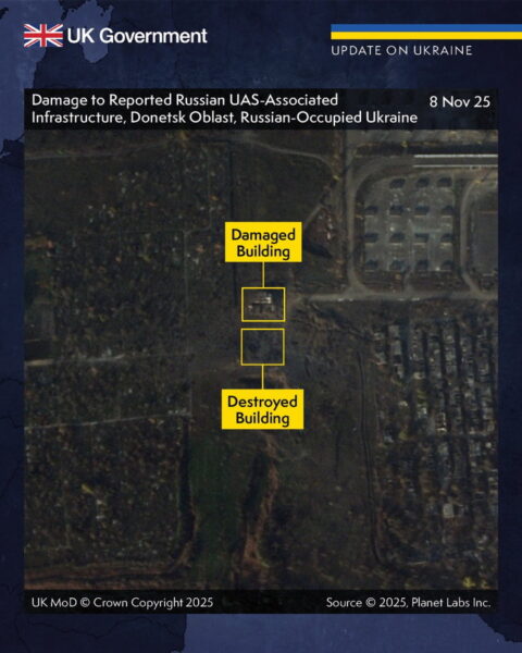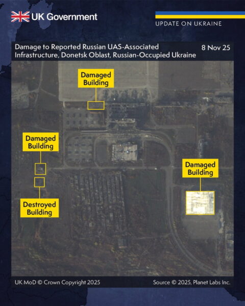 ロシア軍が「1000機以上の無人機」を保管していた重要拠点が破壊される 衛星画像で被害明らかに 読み込み中... 拡大画像 ウクライナ軍の攻撃で被害を受けたドネツィク空港付近にあるロシア軍の無人機基地の衛星画像。弾頭保管に使用されていた建物1棟が破壊されたほか、さらに2棟が損傷を受け、自爆無人機の発射施設や燃料保管庫、弾薬庫なども損傷したという(画像:イギリス国防省) 拡大画像 ウクライナ軍の攻撃で被害を受けたドネツィク空港付近にあるロシア軍の無人機基地の衛星画像。弾頭保管に使用されていた建物1棟が破壊されたほか、さらに2棟が損傷を受け、自爆無人機の発射施設や燃料保管庫、弾薬庫なども損傷したという(画像:イギリス国防省) 拡大画像 ウクライナ軍の攻撃で被害を受けたドネツィク空港付近にあるロシア軍の無人機基地の衛星画像。弾頭保管に使用されていた建物1棟が破壊されたほか、さらに2棟が損傷を受け、自爆無人機の発射施設や燃料保管庫、弾薬庫なども損傷したという(画像:イギリス国防省) 拡大画像 飛来する「シャヘド136」(画像:ウクライナ国防省) 関連記事 抽選じゃない! 宮ヶ瀬クリスマスに400人が無料招待されるぞ! (PR)バイク王 ミサイルも魚雷も無し!? 初の新ジャンル自衛艦「OPV」とは? “武装貧弱”でも日本に必須なワケ 小田急「ロマンスカー」歴代の“人気車種”は? ロケ地の「ポツンと戦車」×仮面ライダー俳優 “謎の写真” にファン歓喜!? 【無料セミナー】「自動車DXサミット vol.4」申込受付中! (PR)アイティメディア/メディア・ヴァーグ この画像の記事を読む