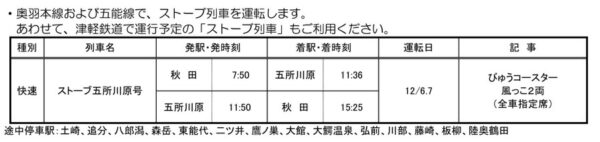 JR東「異色の国鉄型車両」がロングラン! “ストーブ列車同士のリレー乗り継ぎ”も可能なダイヤで今週運転 読み込み中... 拡大画像 快速「ストーブ五所川原号」(画像:JR東日本) 拡大画像 トロッコ車両「びゅうコースター風っこ」(画像:写真AC) 関連記事 抽選じゃない! 宮ヶ瀬クリスマスに400人が無料招待されるぞ! (PR)バイク王 「約80年ぶりの新型車両」に現地の反応は? 仙台のJR線でついにデビュー “首都圏から来た先輩”はいつまでいる!? 小田急「ロマンスカー」歴代の“人気車種”は? 「乗り換えやすい駅」ナンバーワンは“当然?” 東京の地下鉄「乗り換えやすいよう改造した駅」にも“便利になった”の声 【無料セミナー】「自動車DXサミット vol.4」申込受付中! (PR)アイティメディア/メディア・ヴァーグ この画像の記事を読む