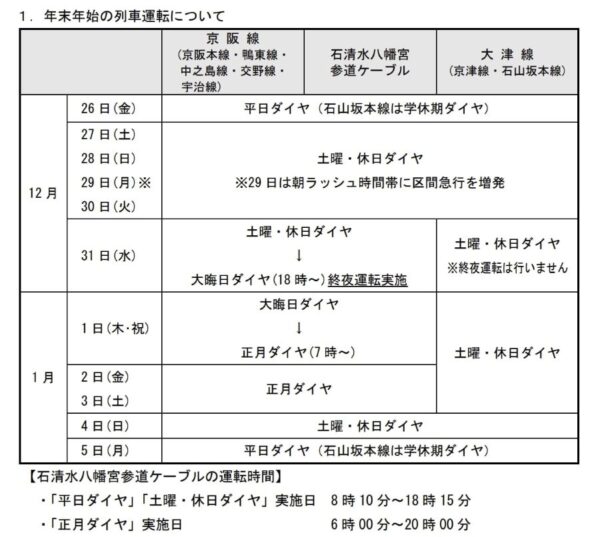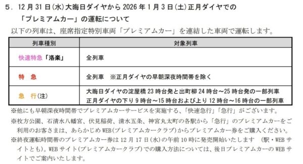 京阪プレミアムカーが年越し運転!快速特急「洛楽」も増発 年末年始ダイヤが公表