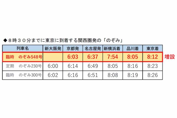 京都始発の「のぞみ」新設 朝イチ東京到着が早くなる! 3月に東海道新幹線ダイヤ改正 読み込み中... 拡大画像 朝8時半までに東京に到着する関西圏発の「のぞみ」(画像:JR東海) 東海道新幹線(画像:写真AC) 関連記事 「宮ヶ瀬」がさらにライダーの聖地に! 官民プロジェクト始動 (PR)バイク王 駅のコンビニに「想像超えすぎの背徳おにぎり」また現る 中身は“海老カツ”→「えっ、そう来たか!?」な驚愕の中身とは 【見逃し配信中!】「自動車DXサミット vol.4」 (PR)アイティメディア/メディア・ヴァーグ 埼京線の「通勤快速」増発へ ラッシュ時の速達性が向上! 来年3月ダイヤ改正で 観光特急「海幸山幸」が“まさかの駅”に停まる! JR九州ダイヤ改正 「宮崎発南郷行き」が対象 この画像の記事を読む 【特集】大変化!?「2026年3月ダイヤ改正」気になる鉄道の改正情報を一括チェック!
