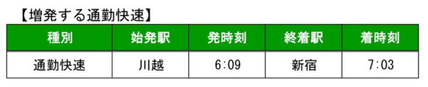 埼京線の「通勤快速」増発へ ラッシュ時の速達性が向上! 来年3月ダイヤ改正で 読み込み中... 拡大画像 増発される埼京線「通勤快速」の運転時刻(画像:JR東日本) 拡大画像 埼京線(画像:写真AC) 関連記事 「宮ヶ瀬」がさらにライダーの聖地に! 官民プロジェクト始動 (PR)バイク王 京葉線の「2駅しか走らない短距離列車」減便へ 所要時間わずか5分! 来年3月ダイヤ改正でメス 【見逃し配信中!】「自動車DXサミット vol.4」 (PR)アイティメディア/メディア・ヴァーグ 「新田原基地に行くので”新田原駅“来ました」→まさかのワナ! AIすら騙される「落とし穴駅」とは ミスったらもう間に合いません 仙石線 大幅増発へ! 新型車両に更新後「ワンマン運転」も実施します 3月ダイヤ改正 この画像の記事を読む 【特集】大変化!?「2026年3月ダイヤ改正」気になる鉄道の改正情報を一括チェック!