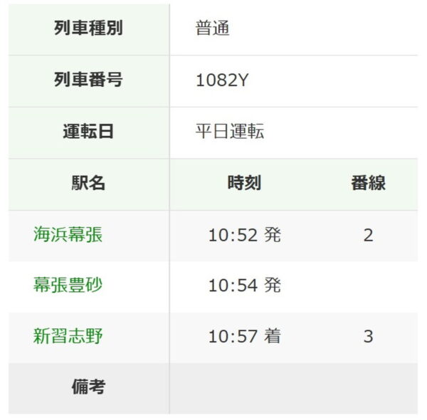 京葉線の「2駅しか走らない短距離列車」減便へ 所要時間わずか5分! 来年3月ダイヤ改正でメス 読み込み中... 拡大画像 減便される海浜幕張発・新習志野行き。平日は海浜幕張駅を9時台、10時台、19時台、22時台に発車する4本、土休日は10時台、12時台、16時台、21時台に発車する4本が2026年3月ダイヤ改正で減便される予定(画像:JR東日本) 拡大画像 京葉線(画像:写真AC) 関連記事 「宮ヶ瀬」がさらにライダーの聖地に! 官民プロジェクト始動 (PR)バイク王 JR函館本線、2つの駅を廃止へ その全貌は? 「新幹線駅の隣の閑散駅」など…利用者数は「こんな少ないの…?」 【見逃し配信中!】「自動車DXサミット vol.4」 (PR)アイティメディア/メディア・ヴァーグ 「あ、路盤がない 護岸ごと…」 北海道のJR幹線が被災 復旧の見通したたず Suicaは「都会のカード」「ステータス」圧倒的な“ペンギン人気”の秘訣とは? PASMOはなぜ押され気味? この画像の記事を読む 【特集】大変化!?「2026年3月ダイヤ改正」気になる鉄道の改正情報を一括チェック!