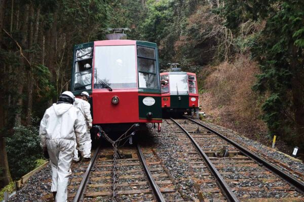 「日本一長いケーブルカー」2100mのロープ交換へ 7年ぶり工事 比叡山鉄道 読み込み中... 拡大画像 2019年のロープ交換工事で搬入されるロープ(画像:比叡山鉄道) 1/4 拡大画像 2019年のロープ交換工事で行われた安全祈願(画像:比叡山鉄道) 2/4 拡大画像 2019年のロープ交換工事の様子。車両後部に新しいロープを接続し、離合箇所まで運転(画像:比叡山鉄道) 3/4 拡大画像 2019年のロープ交換工事の様子。車両後部に新しいロープを接続し、離合箇所まで運転(画像:比叡山鉄道) 4/4 関連記事 「宮ヶ瀬」がさらにライダーの聖地に! 官民プロジェクト始動 (PR)バイク王 京阪プレミアムカーが年越し運転!快速特急「洛楽」も増発 年末年始ダイヤが公表 【見逃し配信中!】「自動車DXサミット vol.4」 (PR)アイティメディア/メディア・ヴァーグ 「信号なしの無料バイパス」さらに北へ 琵琶湖西岸を走る国道161号 24日に新区間が開通 新幹線並みのコスト!? 琵琶湖岸を走る「路面電車」全然“チンチン電車”じゃないワケ-性能も最上級でした この画像の記事を読む
