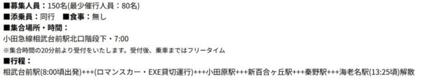 「5時間かけて走るロマンスカー」が運行へ 相武台前発・海老名行き!車内に「録音エリア」も設定 読み込み中... 拡大画像 ツアー「音鉄ファン録音ツアー『轟けVVVFインバータ!』EXE未更新車録音ツアー」で運行される団体臨時列車の運行時刻(画像:小田急電鉄) 拡大画像 ロマンスカー「EXE」(画像:写真AC) 関連記事 「宮ヶ瀬」がさらにライダーの聖地に! 官民プロジェクト始動 (PR)バイク王 「国鉄形電車もこれが最後か」と思わずにはいられないツアーに参加 「あれはドナドナされた車両たち…」 本当に“伏線”となるのか? 【見逃し配信中!】「自動車DXサミット vol.4」 (PR)アイティメディア/メディア・ヴァーグ 海上保安庁待望! 砕氷OKなヘリ巡視船「そうや」引き渡し 配備先は「ロシアに近い拠点港」 「JRと東武の直通特急」が激変!JR車両のデザインが来年に一新 もともとは成田エクスプレスで活躍 この画像の記事を読む