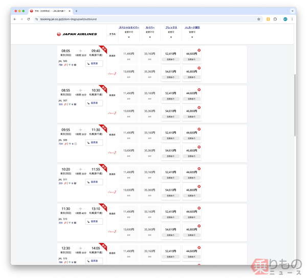JALの公式Xで話題「航空券の転売」なぜ起こる? 「絶対ダメ」…でも起こり得る“2つの例” 読み込み中... 札幌ドームでコンサートが行われる時期の、羽田~新千歳の航空券の予約状況。安いチケットは軒並み完売(同社公式サイトより)。 成田空港の「JALファーストクラスラウンジ」(乗りものニュース編集部撮影)。 成田空港の「JALファーストクラスラウンジ」(乗りものニュース編集部撮影)。 羽田空港の「ANAスイートラウンジ」(乗りものニュース編集部撮影)。 羽田空港の「ANAスイートラウンジ」(乗りものニュース編集部撮影)。 JAL機(乗りものニュース編集部撮影)。 JALとANAの旅客機(乗りものニュース編集部撮影)。 関連記事 「宮ヶ瀬」がさらにライダーの聖地に! 官民プロジェクト始動 (PR)バイク王 「コレ、今飛んでいるなかで最古のジャンボ機です」→その機齢にSNSユーザー驚愕!! どんな機体? 航空機追跡サイトが投稿 【見逃し配信中!】「自動車DXサミット vol.4」 (PR)アイティメディア/メディア・ヴァーグ 成田空港に「JALのロゴが入った巨大珍貨物機」降臨 その正体は? “世界最強エンジン”搭載の「国内航空導入ゼロ機」 「ブルーインパルス」のルーツはライト兄弟が作った!?「歴史上の偉人」が生んだ知られざる「初めて」(後編) この画像の記事を読む