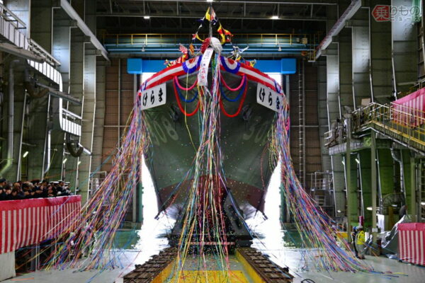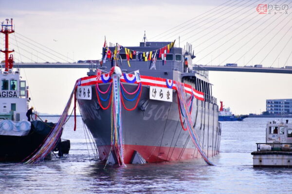 史上初の艦名! 最新自衛艦「けらま」進水 日本最大級のプラスチック船その理由は?