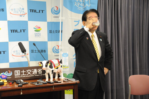 「牛乳プハーァッ!」大臣がまた一人!? 小野田大臣に続く そうかこれが“国土強靭化”か…!