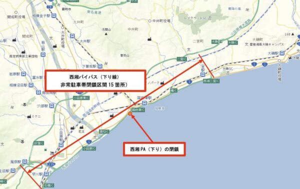 高速道路で「初日の出待ち」させません!? 日本有数の「海に近いPA」2か所閉鎖 本線上もがっちりガードで“事故防止” 読み込み中... 拡大画像 由比PAの閉鎖・付近の路肩規制イメージ図(画像:NEXCO中日本) 拡大画像 西湘BP下り線、閉鎖する非常駐車帯15か所(画像:NEXCO中日本) 拡大画像 非常駐車帯の規制イメージ図(画像:NEXCO中日本) 拡大画像 海に面した由比PA(乗りものニュース編集部撮影) 関連記事 「宮ヶ瀬」がさらにライダーの聖地に! 官民プロジェクト始動 (PR)バイク王 「ん、これ“島”じゃないか…?」千葉の団地エリアに不思議な一画 行ってみたら“ちょっと残念な光景”が 【見逃し配信中!】「自動車DXサミット vol.4」 (PR)アイティメディア/メディア・ヴァーグ 「9割の方が全線開通を望んでいます」 お墓に遮られる「開かずの幹線道路」部分開通でも劇的効果!? 東京練馬 道路の“ダイヤマーク”無視しないで! 知らないと危険な記号の正体「いまだ半数のクルマが違反」「反則金は約1万円!」 この画像の記事を読む
