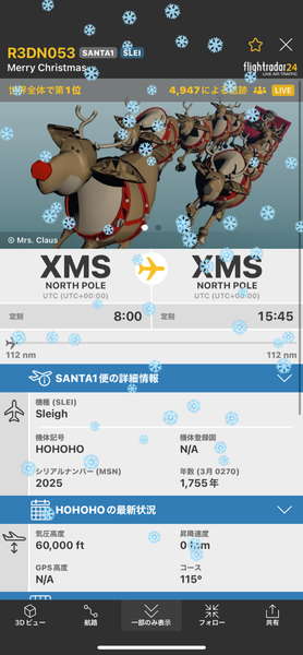 「世界的航空機追跡サイト」に「サンタの機影」出現! 超高高度を超低速で飛ぶ「機齢は1755年」…準備運動か? 読み込み中... フライトレーダー24に出現した「SANTA1」(画像:フライトレーダー24)。 フライトレーダー24に出現した「SANTA1」(画像:フライトレーダー24)。 フライトレーダー24に出現した「SANTA1」(画像:フライトレーダー24)。 関連記事 「宮ヶ瀬」がさらにライダーの聖地に! 官民プロジェクト始動 (PR)バイク王 民間型の「オスプレイ」のような機体が初飛行! ヘリよりも高速で長時間飛べる!? 【見逃し配信中!】「自動車DXサミット vol.4」 (PR)アイティメディア/メディア・ヴァーグ ANAグループ、「貨物事業会社」を再編へ! 傘下には「国内唯一の巨大機ユーザー」も 2026年度末をめどに 「エイみたいな異形の旅客機」なぜ実現困難? 既存機より「優れた点」多数も… 「航空機研究者」に聞くと納得の理由が この画像の記事を読む