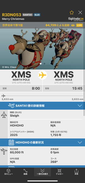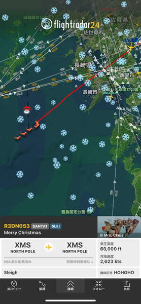 フライトレーダーの「サンタ」が日本上空にもキタ! 今年はどこ飛んだ? 「ソリ」なのにトンデモ爆速…その異様な光景 読み込み中... 日本上空を通過する「フライトレーダーのサンタ」(画像:フライトレーダー24)。 日本上空を通過する「フライトレーダーのサンタ」(画像:フライトレーダー24)。 日本上空を通過する「フライトレーダーのサンタ」(画像:フライトレーダー24)。 日本上空を通過する「フライトレーダーのサンタ」(画像:フライトレーダー24)。 日本上空を通過する「フライトレーダーのサンタ」(画像:フライトレーダー24)。 日本上空を通過する「フライトレーダーのサンタ」(画像:フライトレーダー24)。 日本上空を通過する「フライトレーダーのサンタ」(画像:フライトレーダー24)。 日本上空を通過する「フライトレーダーのサンタ」(画像:フライトレーダー24)。 日本上空を通過する「フライトレーダーのサンタ」(画像:フライトレーダー24)。 関連記事 「宮ヶ瀬」がさらにライダーの聖地に! 官民プロジェクト始動 (PR)バイク王 あまりにマルチな「超大型空中消火機」誕生へ JAL・ANAでも運用の旅客機がベース 「超大容量」なその全貌 【見逃し配信中!】「自動車DXサミット vol.4」 (PR)アイティメディア/メディア・ヴァーグ 「凄い!」 中部空港で行われた「大迫力」の飛行訓練、実際の映像公開で話題に「見応えある」「知らなかった」 ジェットスター「約8年4か月ぶり新規国際線」強みは? 行き先は“潜在力MAX観光都市” 乗ったら「もう他社便では行けません…」 この画像の記事を読む
