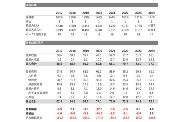 混雑率が“5年連続”全国ワースト!? なぜ「日暮里・舎人ライナー」はこんなに混むのか? 対策に苦戦するワケ 読み込み中... 拡大画像 日暮里・舎人ライナーの直近の運輸成績と営業成績(筆者作成) 拡大画像 日暮里・舎人ライナーと並行して走る都営バス「里48」系統(乗りものニュース編集部撮影) 拡大画像 日暮里・舎人ライナーの全面展望(乗りものニュース編集部撮影) 拡大画像 日暮里・舎人ライナーには延伸構想がある(国土地理院の地図を加工) 拡大画像 日暮里・舎人ライナー(画像:写真AC) 拡大画像 日暮里・舎人ライナー開業時の車両300形(乗りものニュース編集部撮影) 関連記事 「宮ヶ瀬」がさらにライダーの聖地に! 官民プロジェクト始動 (PR)バイク王 東京⇔埼玉の「新たな大幹線」ようやく延伸! 「新東京所沢線」東京で2月に開通へ “踏切渋滞”を回避する新ルート誕生 【見逃し配信中!】「自動車DXサミット vol.4」 (PR)アイティメディア/メディア・ヴァーグ 西武新宿線の一部駅で「窓口を終了」インターホン対応に 東京都内・埼玉県内 駅の営業体制の見直し進む 「寝過ごしたら“詰む”」駅はどこ?かつて存在した“恐怖の行先”とは? 「あと1駅が危険」という“格言” この画像の記事を読む