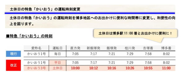 「わずか1往復のJR特急」に異変 3月ダイヤ改正で利便性向上へ “人名由来”の珍しい列車名 読み込み中... 拡大画像 特急「かいおう」の運転時刻変更 の概要(画像:JR九州) 拡大画像 787系(画像:写真AC) 関連記事 「宮ヶ瀬」がさらにライダーの聖地に! 官民プロジェクト始動 (PR)バイク王 北陸と東北を「6時間以上かけて結ぶ新幹線」が運行へ 走行距離1000km超えのロングラン列車に 【見逃し配信中!】「自動車DXサミット vol.4」 (PR)アイティメディア/メディア・ヴァーグ 「安全のため」重すぎる設備、重すぎる人の負担――地方鉄道の“三重苦”を救う「シンプル化技術」の数々 あとは政策だけ? 地味に進むJR普通列車の「ロングシート化」仕方ないことなのか? 旅情・快適さ・それより“効率”という時代 この画像の記事を読む 【特集】大変化!?「2026年3月ダイヤ改正」気になる鉄道の改正情報を一括チェック!