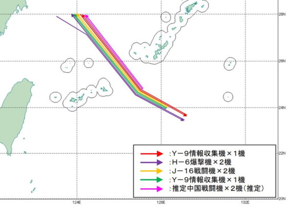 空自機が中国軍の「怪鳥」を激写! 沖縄本島と宮古島の間を往復も 防衛省が画像を公開 読み込み中... 拡大画像 航空自衛隊が確認した中国軍のH-6爆撃機。ソ連初のジェット爆撃機Tu-16を原型とし、中国がライセンス生産して独自に改修し続けている機体(画像:防衛省統合幕僚監部) 拡大画像 航空自衛隊が確認した中国軍のJ-16戦闘機(画像:防衛省統合幕僚監部) 拡大画像 航空自衛隊が確認した中国軍のY-9情報収集機(画像:防衛省統合幕僚監部) 拡大画像 中国軍機の飛行ルート(画像:防衛省統合幕僚監部) 拡大画像 航空自衛隊のF-15戦闘機(画像:防衛省統合幕僚監部) 関連記事 「宮ヶ瀬」がさらにライダーの聖地に! 官民プロジェクト始動 (PR)バイク王 フランス“皿まわさない”空飛ぶレーダー基地の購入を決定! 自国開発ではなく既存機で 【見逃し配信中!】「自動車DXサミット vol.4」 (PR)アイティメディア/メディア・ヴァーグ ロシア軍の重要な防空兵器が「撃破される瞬間」を捉えた映像が公開 “頭脳”を無力化か 創作物の話が現実に?“世界初”レーザー迎撃兵器「アイアンビーム」が軍に納入開始! 既に敵機撃墜の実績も!? この画像の記事を読む