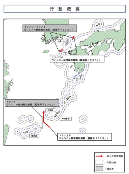 ロシア軍の「メッチャ怪しい軍艦」が日本に超接近! 自衛隊機が上空から捉える 接続水域を航行も 読み込み中... 拡大画像 海上自衛隊が確認したロシア海軍のヴィシニャ級情報収集艦(画像:防衛省統合幕僚監部) 拡大画像 ロシア海軍のヴィシニャ級情報収集艦の航行ルート(画像:防衛省統合幕僚監部) 拡大画像 海上自衛隊のP-3C哨戒機(画像:海上自衛隊) 関連記事 氷路面も走れる新世代タイヤ「シンクロウェザー」体感レポ 軽で志賀高原へ行ってみた (PR)DUNLOP ロシア軍の「機動力に優れた新装備」を撃破か ウクライナが攻撃の様子を捉えた映像を公開 艦載用の「レーザー兵器」搭載に向け合弁会社設立! 小さい目標も狙えてコスパも最強 ドイツ ロシア軍の重要な防空兵器が「撃破される瞬間」を捉えた映像が公開 “頭脳”を無力化か 前線から1000km以上先のロシア石油施設“闇夜にまぎれ隠密攻撃”映像を初めて公開 ウクライナ この画像の記事を読む