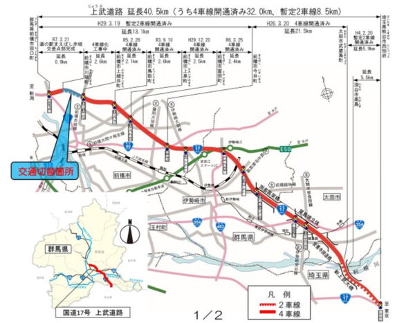 延長40km超「群馬の大幹線バイパス」が“ほぼ4車線化”目前! 埼玉からショートカット「上武道路」対面通行がまた一つ解消へ