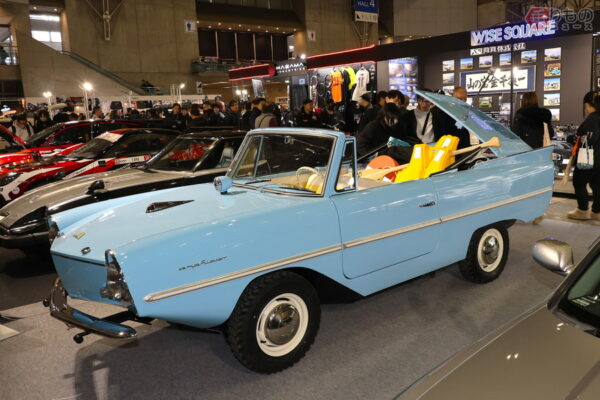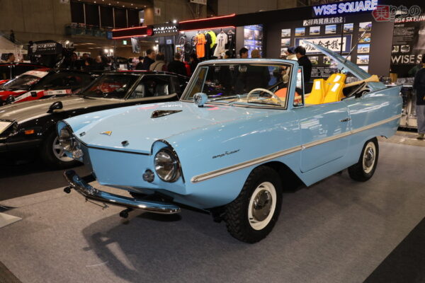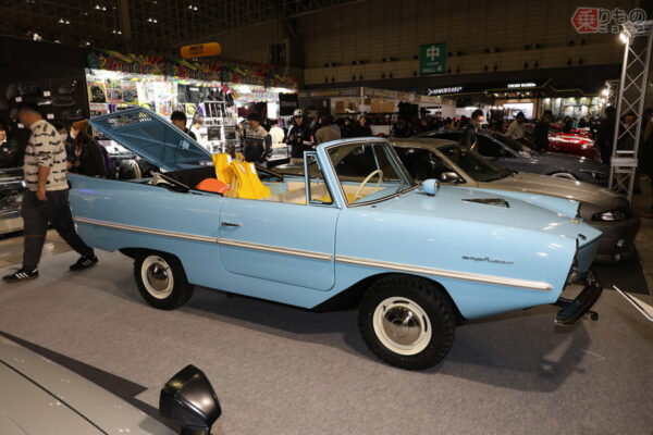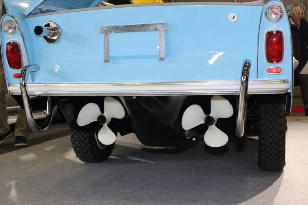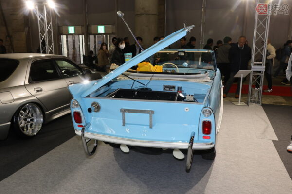 幕張で発見!「60年前の水色クラシックカー」後ろ姿がなんか変… 免許も登録も2種類必要な激レア車 しかも「世界初」の称号まで