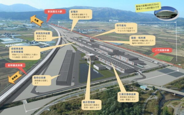 新幹線の「巨大な車両基地」が大幅に増強へ いよいよ延伸を見据え増築工事に着手! 完成はいつ? 読み込み中... 拡大画像 北海道新幹線唯一の総合車両基地である「函館新幹線総合車両所」。開設当初から札幌延伸時の増強を前提に建設されている。敷地の左端にある線路が敷かれていない場所が着発収容庫の増築予定地(画像:鉄道建設・運輸施設整備支援機構) 拡大画像 北海道新幹線唯一の総合車両基地である「函館新幹線総合車両所」。開設当初から札幌延伸時の増強を前提に建設されている(画像:鉄道建設・運輸施設整備支援機構) 拡大画像 北海道新幹線唯一の総合車両基地である「函館新幹線総合車両所」。開設当初から札幌延伸時の増強を前提に建設されている(画像:北海道七飯町) 拡大画像 10両編成のH5系(画像:写真AC) 関連記事 9万8000円で250ccフルカウルスポーツバイクが手に入るってマジ!? (PR)バイク王 日通とJR東海がタッグ! 新幹線を利用した「即日配達サービス」開始 荷物は車両のどこに置く? 氷路面も走れる新世代タイヤ「シンクロウェザー」体感レポ 軽で志賀高原へ行ってみた (PR)DUNLOP 愛知と三重を「ズバッと短絡」 行き止まりの人工島を“通過点”にする「45分のワープルート」vs 特急列車 どれくらい速くて安い? なんだ、この濃密な“昭和感”は…! 富山地鉄の「本気で古い」激シブ駅舎6選【本線編】 リフォームしてても「時が止まってる」 この画像の記事を読む