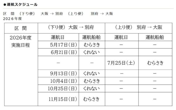夜行フェリーを“昼間”に運航=「瀬戸内海の超絶景!」 さんふらわあ名物「昼クルーズ」2026年も運航へ 読み込み中... 拡大画像 2026年の運航スケジュール(画像:商船三井さんふらわあ) 拡大画像 さんふらわあから見える景色(画像:商船三井さんふらわあ) 拡大画像 さんふらわあから見える景色(画像:商船三井さんふらわあ) 拡大画像 さんふらわあから見える景色(画像:商船三井さんふらわあ) 拡大画像 さんふらわあ くれない(画像:商船三井さんふらわあ) 関連記事 9万8000円で250ccフルカウルスポーツバイクが手に入るってマジ!? (PR)バイク王 愛知と三重を「ズバッと短絡」 行き止まりの人工島を“通過点”にする「45分のワープルート」vs 特急列車 どれくらい速くて安い? 氷路面も走れる新世代タイヤ「シンクロウェザー」体感レポ 軽で志賀高原へ行ってみた (PR)DUNLOP 「なんかすごい」 フェリーのデッキに“異質な光景”出現にSNS「素晴らしい」 乗客からの声に応えちゃった“柔軟さ”に喜びの声 幕張で発見!「60年前の水色クラシックカー」後ろ姿がなんか変… 免許も登録も2種類必要な激レア車 しかも「世界初」の称号まで この画像の記事を読む