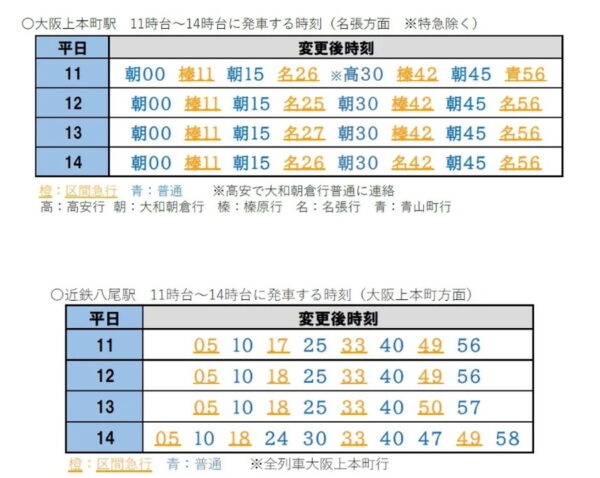 近鉄大阪線のダイヤが激変! 「区間急行」新設へ 昼間時間帯は消滅する種別も 3月ダイヤ変更 読み込み中... 拡大画像 大阪上本町駅と近鉄八尾駅の11~14時台の発車時刻(画像:近鉄) 拡大画像 近鉄大阪線(画像:写真AC) 関連記事 9万8000円で250ccフルカウルスポーツバイクが手に入るってマジ!? (PR)バイク王 「お客が明らかに減った」 東京からも近い旅先でなぜ? 魅力満載の「絶景&レトロ私鉄」で見た光景とは 氷路面も走れる新世代タイヤ「シンクロウェザー」体感レポ 軽で志賀高原へ行ってみた (PR)DUNLOP 近鉄の「ミニ支線」に特急が新設へ 大阪難波まで乗り換えなし! 3月にダイヤ変更 日通とJR東海がタッグ! 新幹線を利用した「即日配達サービス」開始 荷物は車両のどこに置く? この画像の記事を読む 【特集】大変化!?「2026年3月ダイヤ改正」気になる鉄道の改正情報を一括チェック!