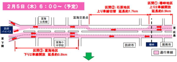 国道2号の「山口の難所」4車線化へ! 高速インターまでスイスイ化「富海拡幅」3月に開通 「マツダ」と「ハモ」に整備効果