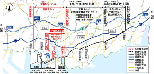 ぜんぶ出来たら55km! 国道2号の「海側バイパス」4月に延伸 海を越えて“前後ブツ切り”解消! “不思議な名前のインター”も