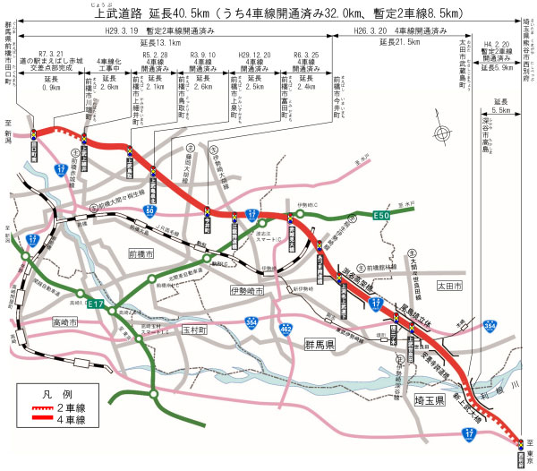 50年越し!? 群馬の大幹線「上武道路」ほぼ全線“4車線化”完了へ 関越道の「下道」代替ルート 際立つ「埼玉との“落差”」