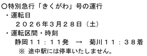 東海道本線で「ノンストップの特急」が運転へ “乗ったら次が終点”の珍列車 車両は特急形じゃない!? 読み込み中... 拡大画像 特別急行「きくがわ」号の運転時刻(画像:JR東海) 拡大画像 313系8000番台(画像:PIXTA) 関連記事 【マセラティ】オリジナルプレゼントキャンペーン実施中! (PR)Maserati Japan 「耳を疑う」 鹿児島県の「インバウンドは”破格”で九州新幹線利用OK計画」にSNS激昂 2.78億円投入→「信じられないほどの不公平」 9万8000円で250ccフルカウルスポーツバイクが手に入るってマジ!? (PR)バイク王 「都会過ぎる」のはリスクも? 東京近郊の「住むにはハードルが高い」路線・エリアとは “理想の条件”も明らかに 氷路面も走れる新世代タイヤ「シンクロウェザー」体感レポ 軽で志賀高原へ行ってみた (PR)DUNLOP この画像の記事を読む